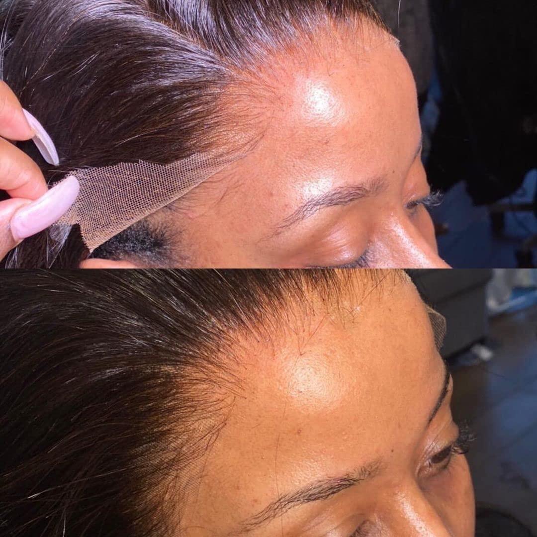 Tip for a perfect lace melt: To avoid the glue or gel turning white and sticking to the band, please wait for your glue to dry majority of the way and then apply the lace melting band, you will get a perfect install and the lace will melt into the scalp.