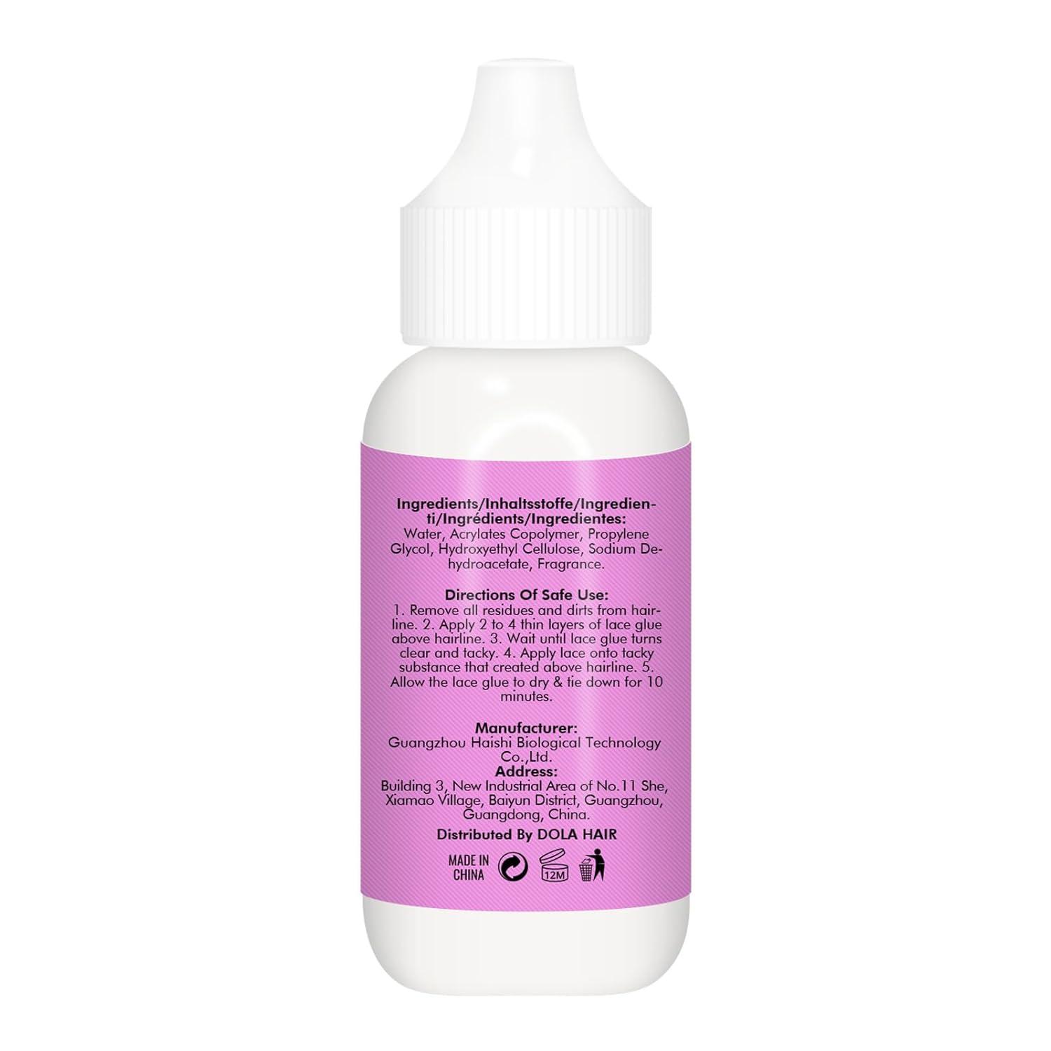 Dolahair Extreme Hold Lace Glue is a non-toxic, latex-free safe water-based glue, designed for people with sensitive skin and scalp, providing a superior, lasting hold for lace front wigs and hair systems without causing damage to your scalp, lace or edges.