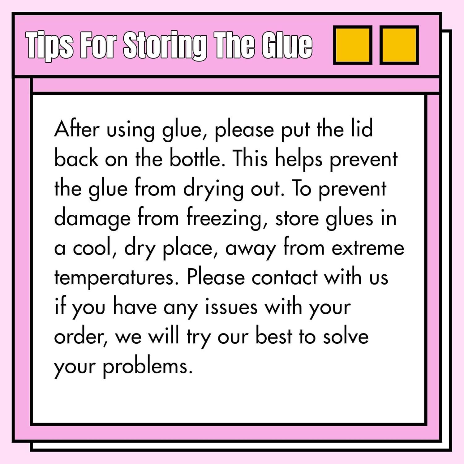 Storage Tips: After use, ensure the lid is securely closed to prevent the glue from drying out or becoming contaminated. To maintain the quality of the glue, store it in a cool, dry place away from extreme temperatures.